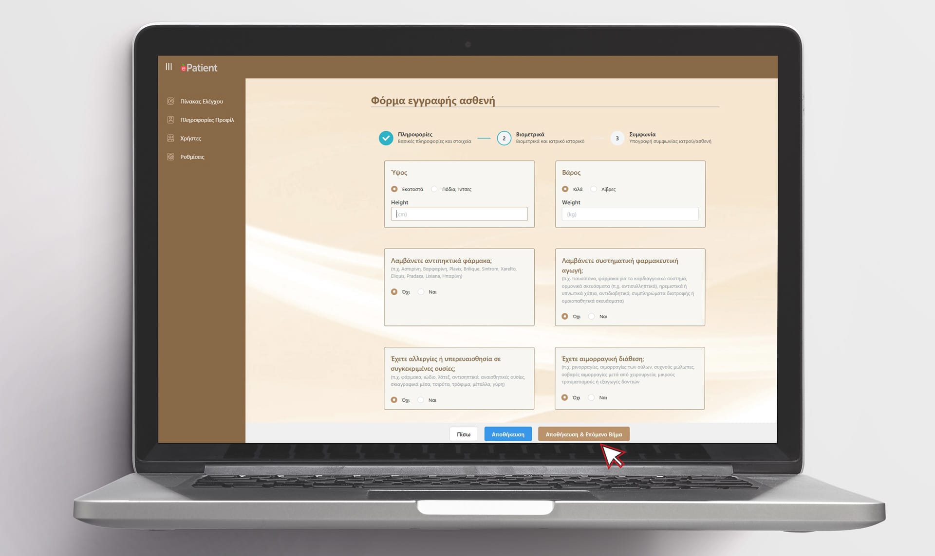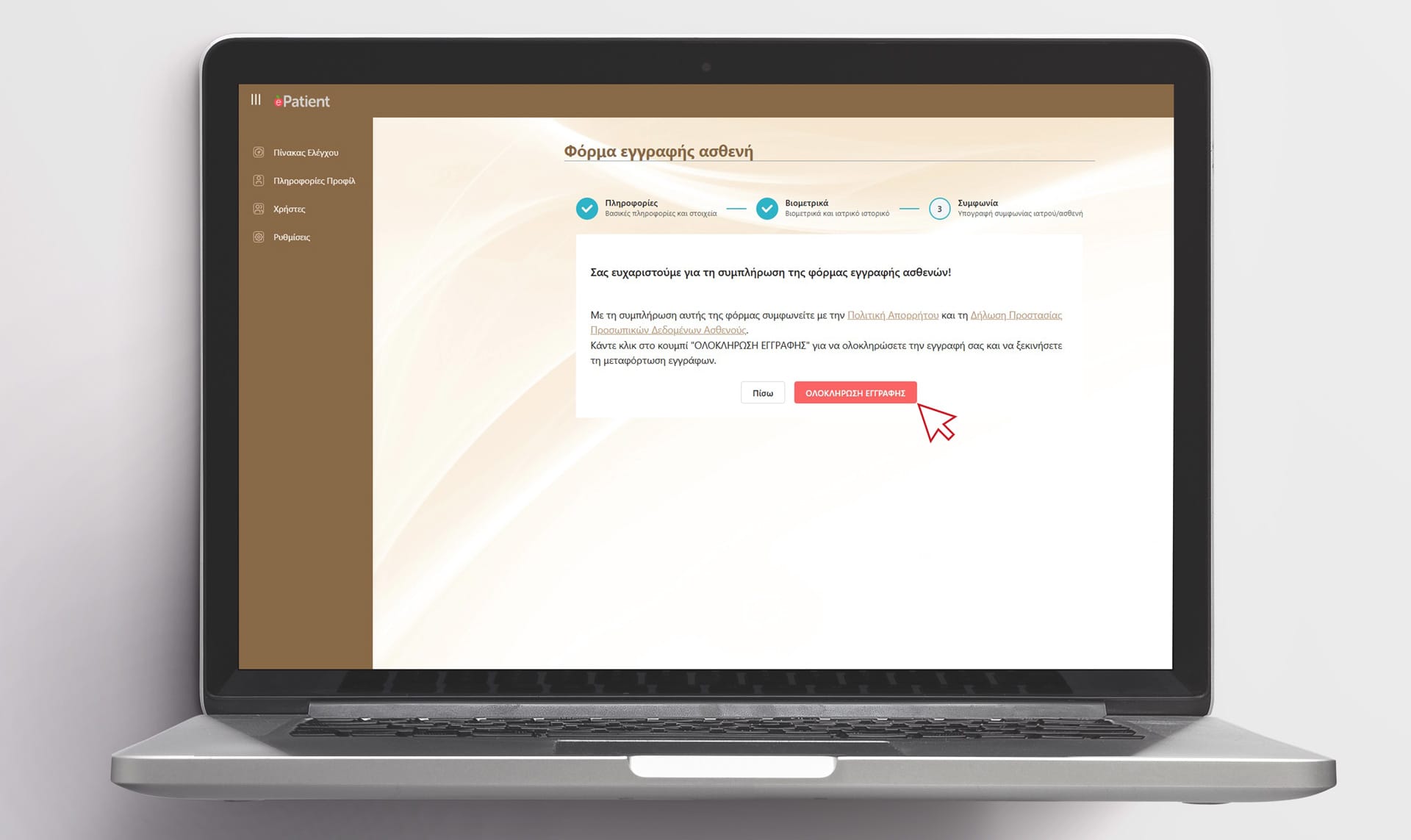 Εγγραφή ασθενούς στη ψηφιακή online εφαρμογή ηλεκτρονικής εγγραφής ασθενών του ιατρείου.